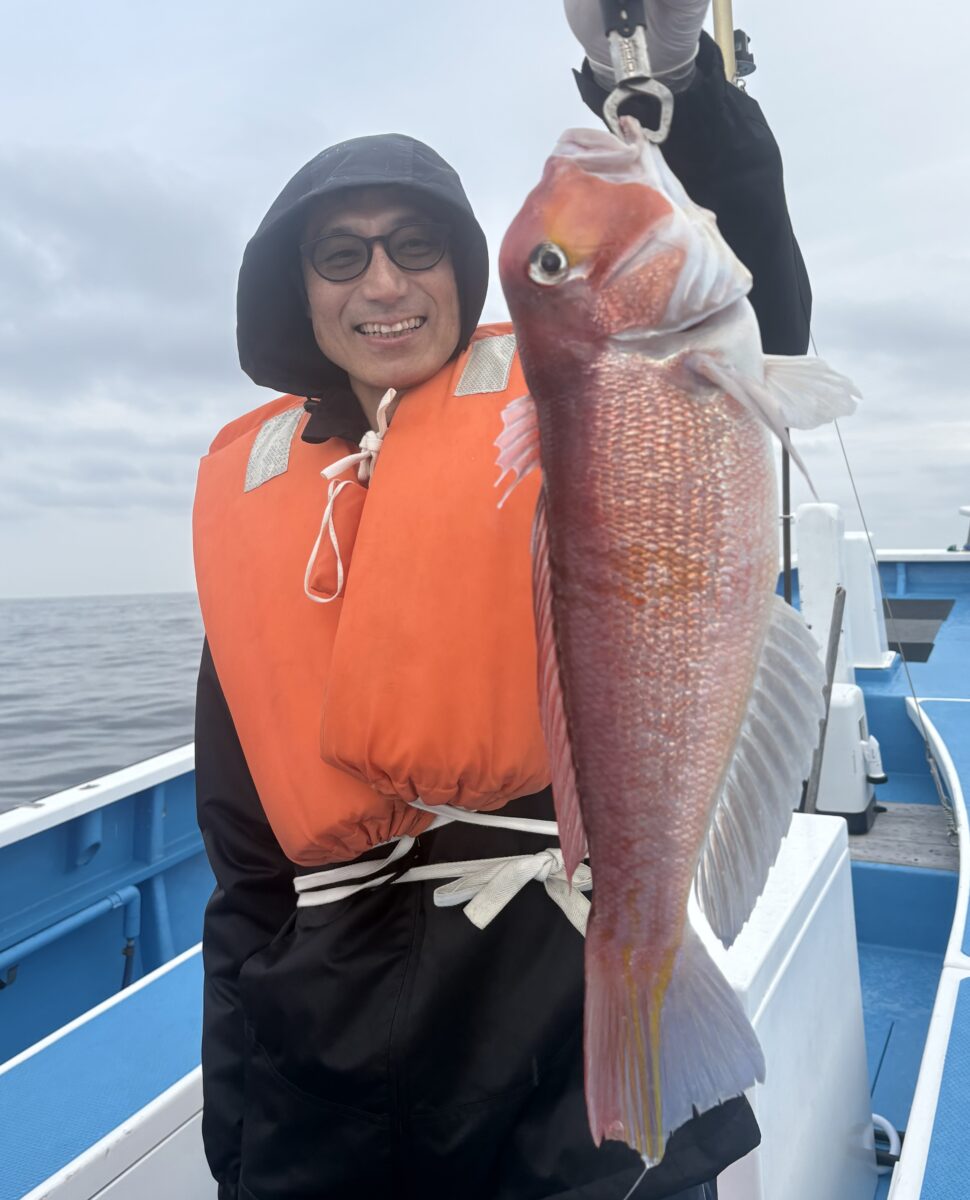 船長がお祭り解き…の最中に隣りの竿が叩かれていました。しれっと大物アマダイ、お見事です!