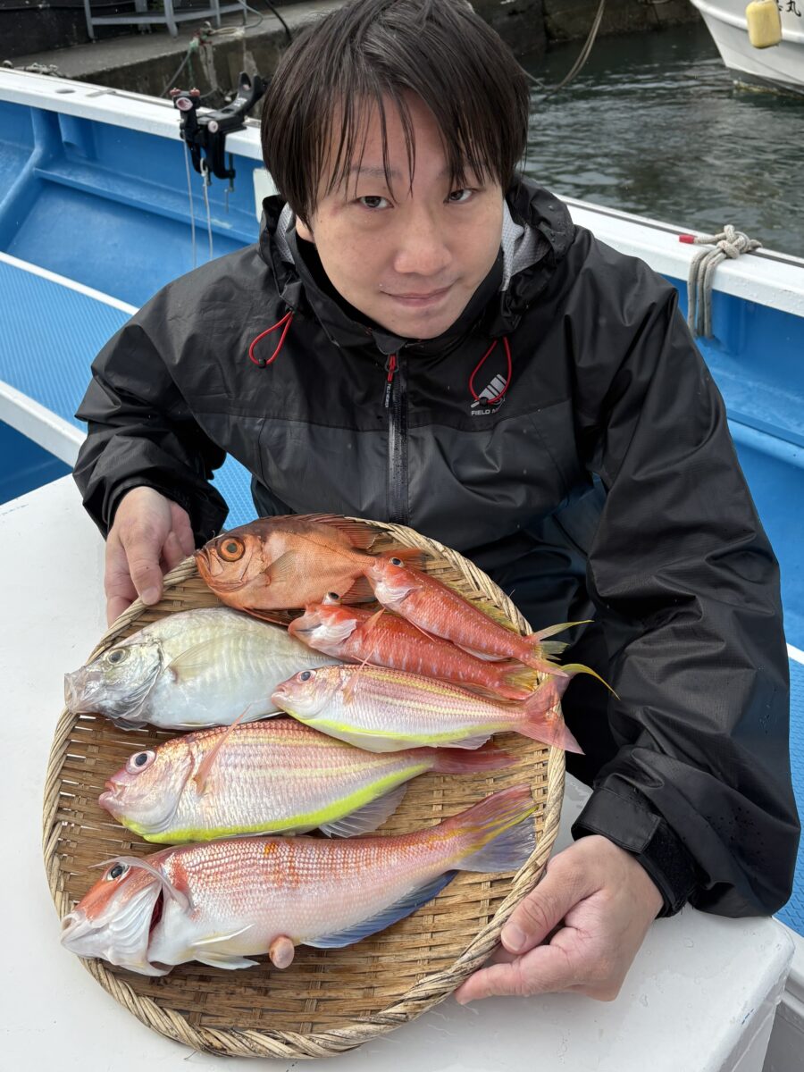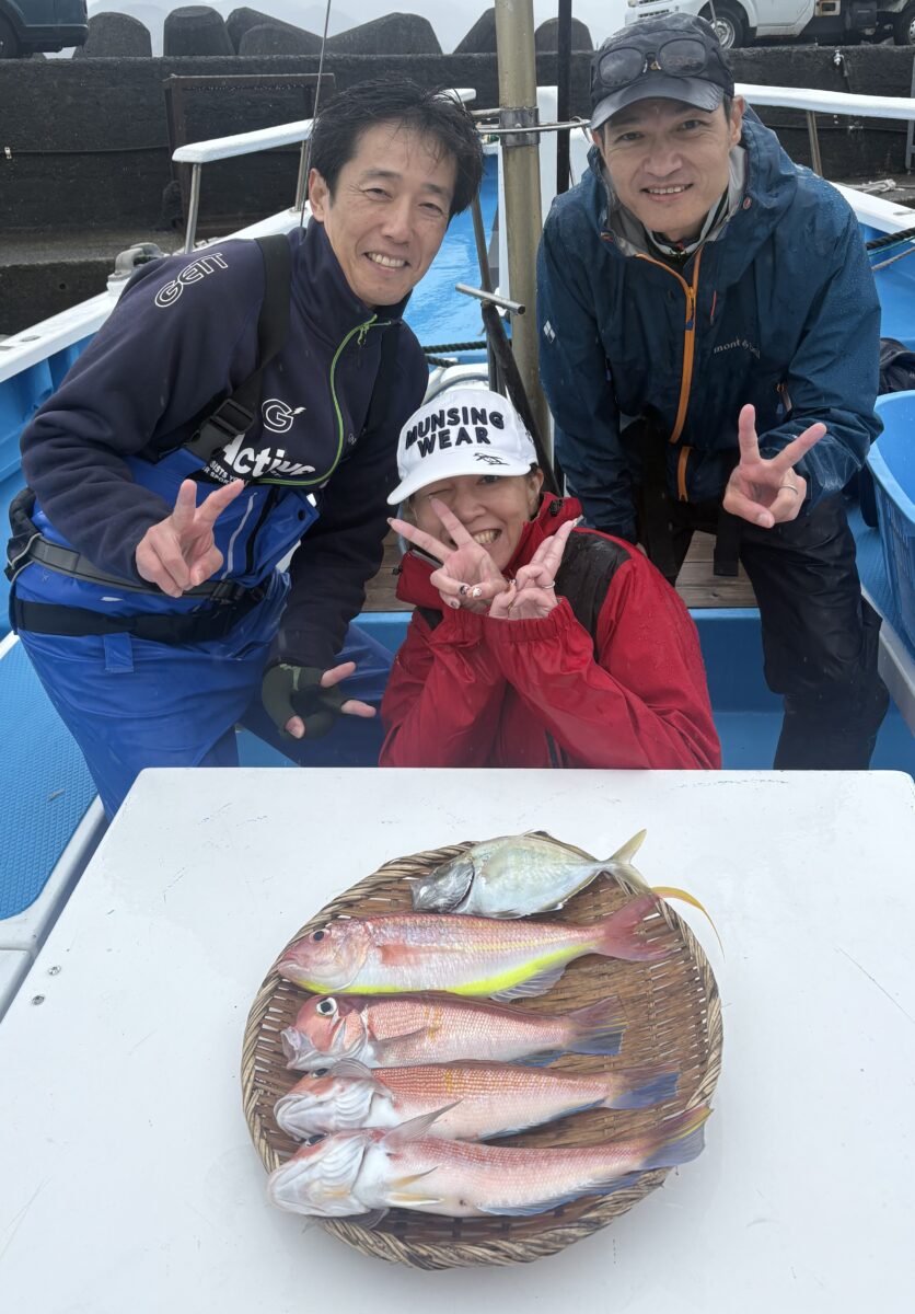 本日(25日)午前も昨日同様にコマセ五目→アマダイ五目のリレー仕立船。リピーター3名さまと新規のお連れさま4名…