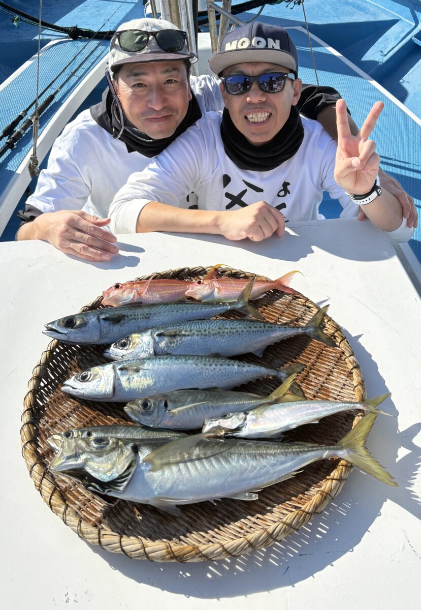 本日(7日)午前はコマセ五目仕立船、船釣り初めての方3名さまを含む6名さまのご案内となりました。少し風とウネリ…