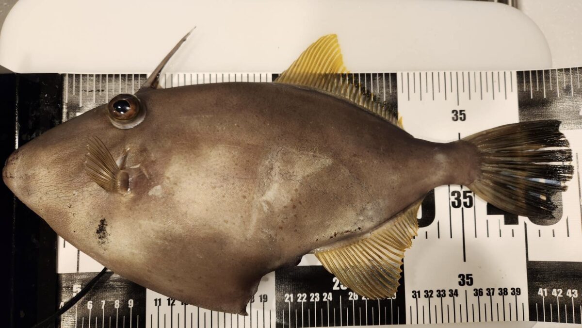 特大ウマヅラハギ。全長43.5cm。JGFA日本記録は40.7cmで「記録更新?」と思われましたが、重量は1.…