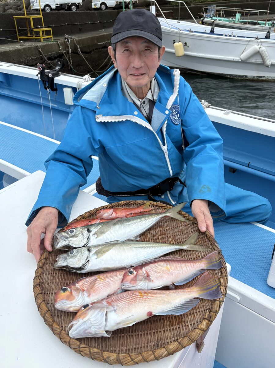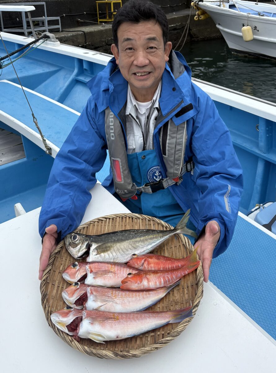 本日(25日)午前も昨日同様にコマセ五目→アマダイ五目のリレー仕立船。リピーター3名さまと新規のお連れさま4名…